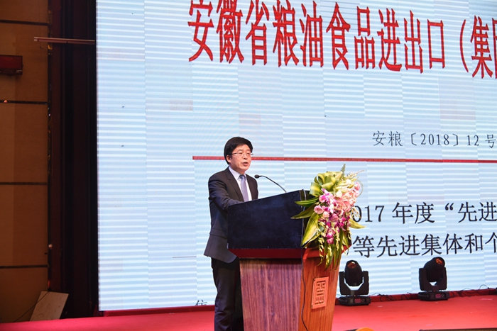 國貿(mào)集團(tuán)董事長范陽發(fā)表了熱情洋溢的講話,他回顧了安糧近年來的發(fā)展歷程,對安糧的跨越式發(fā)展給予高度評價,對安糧2018年的工作提出殷切希望,向安糧全體員工致以新年祝福!