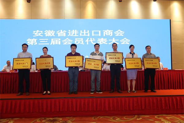 2018年6月21日,安徽省進(jìn)出口商會第三屆會員代表大會在合肥天鵝湖大酒店召開,會上發(fā)布了《2017年安徽省進(jìn)出口排行榜》并對“2017安徽省進(jìn)出口總額50強(qiáng)企業(yè)”進(jìn)行了授牌。