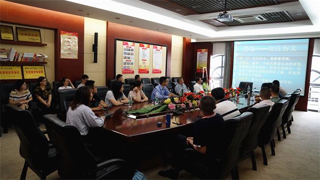 參觀結(jié)束后,實(shí)業(yè)黨支部特邀南昌市委黨?;A(chǔ)理論教研部副主任趙坤教授為參加活動的全體黨員在紀(jì)念館黨員活動室就地上了一堂主題為“重溫紅色經(jīng)典,深入學(xué)習(xí)四個意識、四個自信、兩個維護(hù)核心精神”的現(xiàn)場黨課,既詳實(shí)又生動地介紹了江西這片紅色土地上的革命歷史,從黨史的視角梳理了“四個意識”、“四個自信”、“兩個維護(hù)”的重要性和迫切性,進(jìn)一步領(lǐng)會了習(xí)總書記關(guān)于推進(jìn)紅色基因傳承的要求。