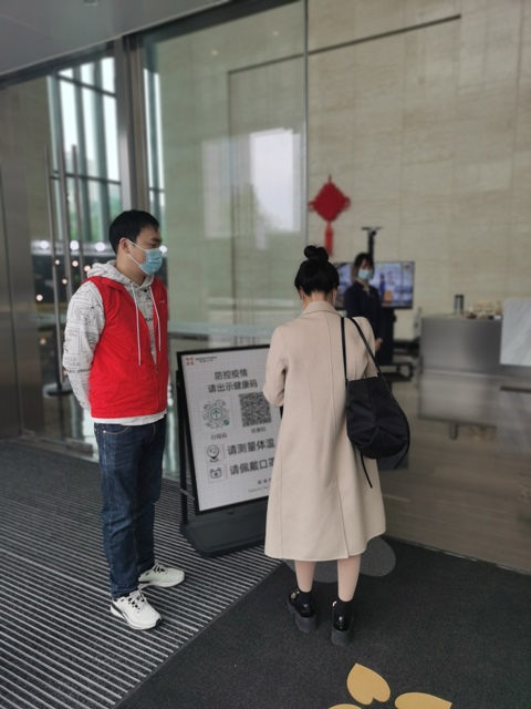 面對(duì)突如其來(lái)的新一輪嚴(yán)峻疫情,早高峰時(shí)期員工進(jìn)入大樓前的雙碼核驗(yàn)和測(cè)量體溫工作,導(dǎo)致在入口處排起長(zhǎng)隊(duì),影響同事們按時(shí)到崗,這給安糧中心物業(yè)管理帶來(lái)了難題。安糧團(tuán)委在集團(tuán)黨委的指示下聞令而動(dòng)、迅速集結(jié),來(lái)自集團(tuán)團(tuán)委各下屬支部的團(tuán)員青年志愿者們,在做好個(gè)人防護(hù)的基礎(chǔ)上,穿起“紅馬甲”,主動(dòng)申請(qǐng)投身到疫情防控工作中,大大加快了早高峰通行效率。