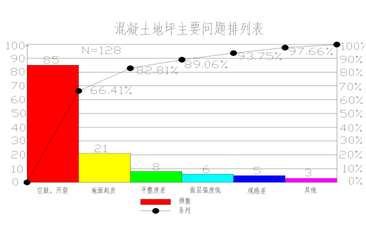 2021年6月開始室內(nèi)地坪的施工,在最初對地坪施工質(zhì)量的檢查中發(fā)現(xiàn),其一次性驗收合格率僅為85.7%,還有較大的提升空間。項目團(tuán)隊經(jīng)過研討后,確定本次的QC活動課題為《提高室內(nèi)混凝土地坪施工一次性合格率》。隨后QC小組迅速展開工作,對項目已施工的 8#、10#、12#樓地坪質(zhì)量進(jìn)行檢查,并對檢查的900個檢查點的數(shù)據(jù)進(jìn)行分析,發(fā)現(xiàn)空鼓、開裂是混凝土地坪的主要質(zhì)量缺陷。