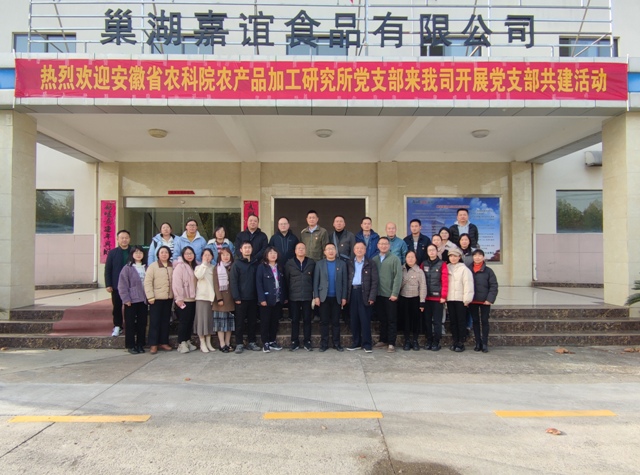 11月16日下午,安徽省農(nóng)業(yè)科學(xué)院農(nóng)產(chǎn)品加工研究所黨支部與巢湖嘉誼黨支部在巢湖嘉誼食品有限公司舉行了支部共建活動(dòng)。雙方共同學(xué)習(xí)了習(xí)近平總書(shū)記關(guān)于科技創(chuàng)新的重要講話精神,并就促進(jìn)預(yù)制菜產(chǎn)業(yè)的高質(zhì)量發(fā)展進(jìn)行了友好的交流,加深了“產(chǎn)、銷、研”進(jìn)一步融合。