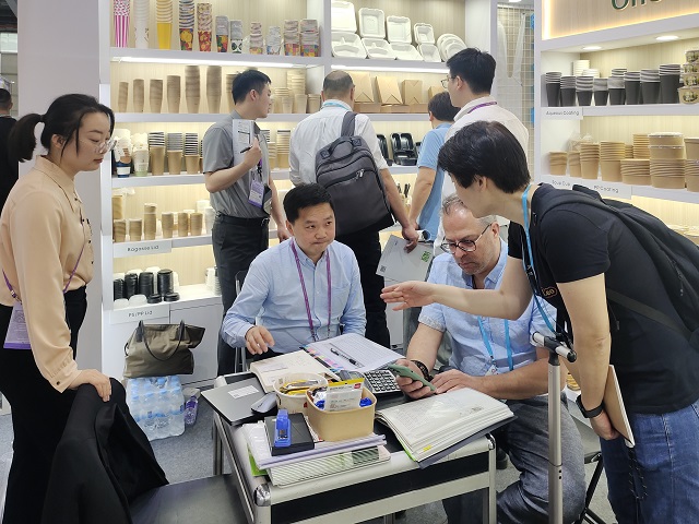 安糧家居展位由安糧國(guó)際日用品事業(yè)部攜數(shù)百款單品展出,產(chǎn)品幾乎覆蓋一次性餐廚全套系列。本次展會(huì)重點(diǎn)推出了全新的PHA高端系列以及壽司盒、紙盤(pán)、甘蔗漿吸管、超細(xì)纖維抹布等新品,在館內(nèi)格外醒目、深受青睞。此外,部門順應(yīng)綠色環(huán)保趨勢(shì),推出了一系列最新環(huán)保產(chǎn)品,吸引了不少具有環(huán)保意識(shí)的客戶群體關(guān)注。攤位模擬國(guó)外超市擺放,仿造小型超市。擺放的產(chǎn)品統(tǒng)一設(shè)計(jì)包裝,著眼聚焦“產(chǎn)品系列化+全流程服務(wù)”,為全球采購(gòu)商提供便利的“一站式采購(gòu)服務(wù)”,獲得新老客戶的一致認(rèn)可與好評(píng)。
