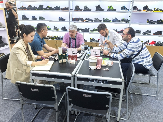 鞋類(lèi)展區(qū)以“創(chuàng)新科技,時(shí)尚出行”為主題,集中呈現(xiàn)了運(yùn)動(dòng)休閑、戶(hù)外功能等多類(lèi)產(chǎn)品。主打的輕便安全鞋采用先進(jìn)的減震與防護(hù)技術(shù),兼具輕量化與高強(qiáng)度特性,獲得歐美客戶(hù)的高度認(rèn)可,開(kāi)展首日就迎來(lái)大量客戶(hù)詢(xún)價(jià)洽談;使用環(huán)保耐磨材料制成的雪地靴,憑借出色的保暖與防滑優(yōu)勢(shì),成為北歐市場(chǎng)的潛力爆品。