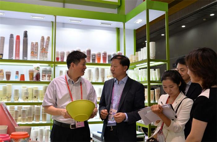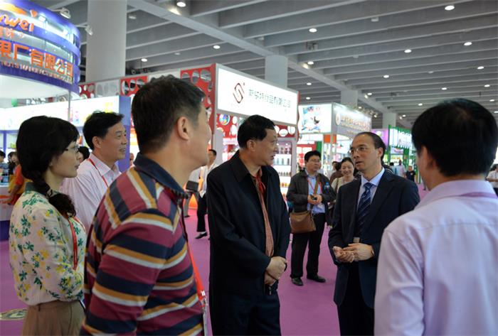省商務(wù)廳張箭廳長(左一)巡視安糧控股展位