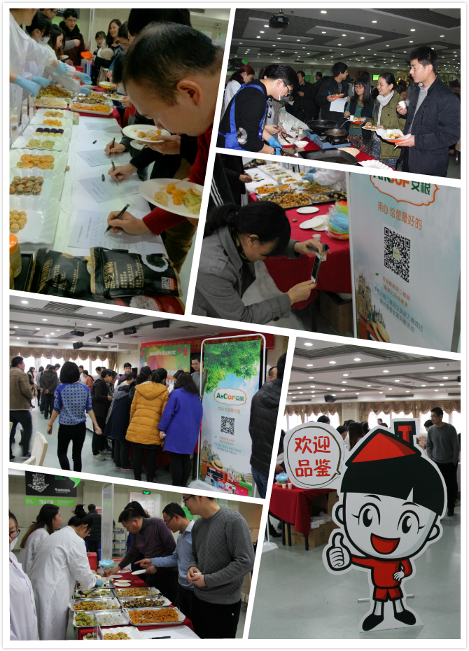為了進(jìn)一步推廣“田田屋”、“安可?!眱纱笃放破煜碌娜庐a(chǎn)品, 安糧實業(yè)經(jīng)過精心策劃、認(rèn)真組織,在安糧員工餐廳開展了一場別開生面的新品品鑒和互動活動。此次活動重點(diǎn)展示了包括冷凍調(diào)理食品、進(jìn)口紅酒、健康養(yǎng)生食品、進(jìn)口調(diào)理肉食在內(nèi)的四大系列新品。冷凍調(diào)理食品中的香口薯芝、五彩蔬菜烙、什錦魷魚圈、菇米花、香菇魷魚餅、花桂薯緣、翡翠蔬菜圈;健康養(yǎng)生食品中的雜糧粉飲品、茶樹菇、黑木耳、干筍衣、干香菇等產(chǎn)品均是首次亮相。大家一邊品嘗著盤中的美食、杯中的美酒,一邊認(rèn)真填寫調(diào)查問券對產(chǎn)品的色澤和口味做出評價。許多員工還對購買產(chǎn)品產(chǎn)生了濃厚興趣,紛紛在現(xiàn)場掃描微店二維碼,并開心地參加了抽獎、拿到了心儀的贈品。