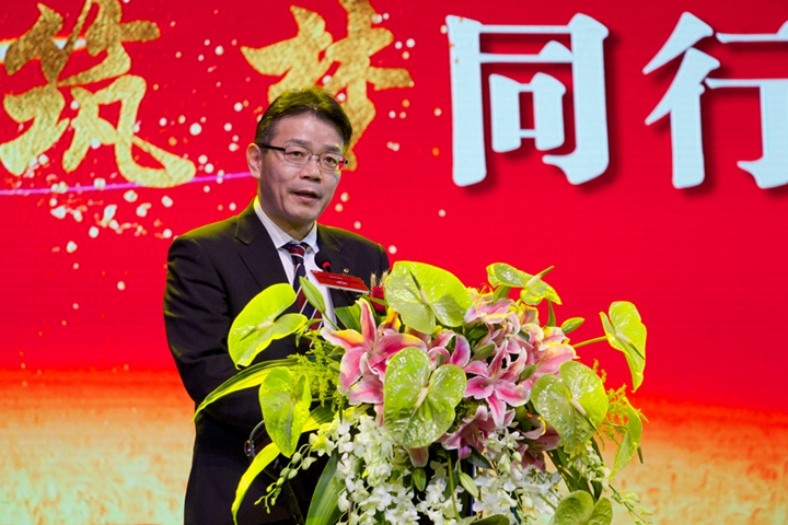 來(lái)自相關(guān)政府部門、國(guó)貿(mào)集團(tuán)、合作伙伴的嘉賓代表也為安糧集團(tuán)送上誠(chéng)摯的祝福。省國(guó)貿(mào)集團(tuán)董事長(zhǎng)范陽(yáng)、省商務(wù)廳廳長(zhǎng)張箭、省國(guó)資委副主任項(xiàng)小龍?jiān)趹c典上致辭。他們一致肯定了安糧40年來(lái)取得的發(fā)展成就,希望安糧繼續(xù)保持良好發(fā)展態(tài)勢(shì),努力實(shí)現(xiàn)更高質(zhì)量、更好效益的企業(yè)發(fā)展,助力建設(shè)“五大發(fā)展”美好安徽。日本水產(chǎn)株式會(huì)社的代表松島和浩部長(zhǎng)也蒞臨現(xiàn)場(chǎng),感懷與安糧三十年的合作歷程,表示愿與安糧同愿同行,互進(jìn)共榮。