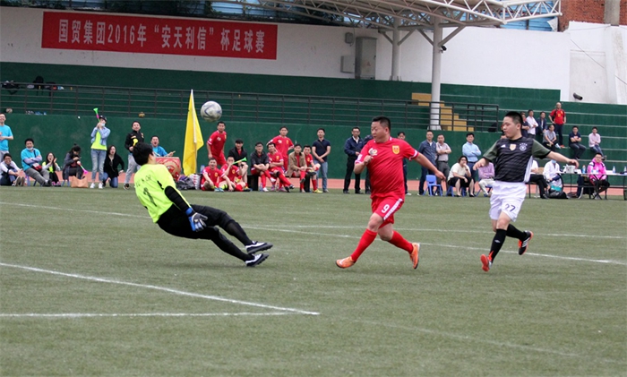 2016年5月13日,國貿(mào)集團2016年“安天利信杯”足球賽在合肥市體育運動學校拉開戰(zhàn)幕,共有來自國貿(mào)系統(tǒng)的7支代表隊參加角逐。安糧集團足球隊在首輪與華安公司代表隊的對話中取得開門紅,以6:2的比分輕取對手,在全取3分的同時,憑借凈勝球優(yōu)勢領跑首輪積分榜。