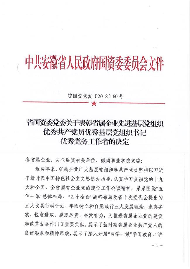 武義海同志榮獲安徽省國資系統(tǒng)“優(yōu)秀共產(chǎn)黨員”稱號
