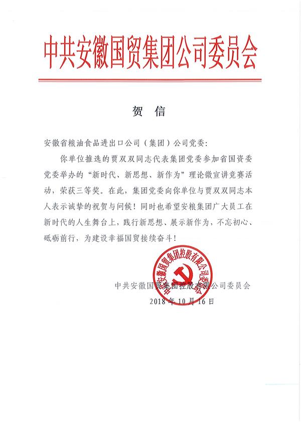 為深入學(xué)習(xí)宣傳習(xí)近平新時代中國特色社會主義思想,省國資委黨委近日組織開展了“新時代、新思想、新作為”理論微宣講競賽活動,經(jīng)過國貿(mào)集團系統(tǒng)內(nèi)層層選拔、好中擇優(yōu),安糧集團推薦的選手--來自安糧置地的賈雙雙獲得了代表國貿(mào)集團參加本次微宣講競賽的資格,并最終在比賽中榮獲三等獎。
