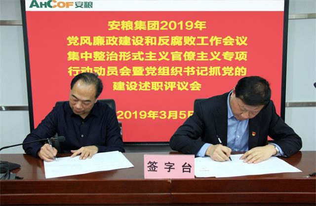 安糧集團召開2019年黨風廉政建設和反腐敗工作會議、集中整治形式主義官僚主義專項行動動員會暨黨組織書記抓黨的建設述職評議會