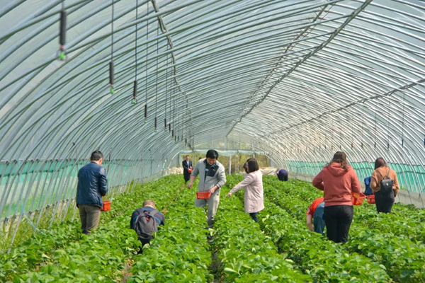 中午,在當(dāng)?shù)叵愦晦r(nóng)家樂飽嘗了一頓鄉(xiāng)間美味后,我們乘車前往舒城扶貧產(chǎn)業(yè)園——草莓示范園。成片的大棚映入眼簾,馥郁的草莓甜香撲面而來,繽紛靚麗的身影在田間穿梭忙碌,一個(gè)個(gè)籃筐里漸漸壘起了小山,品嘗著草莓的甜蜜,滋潤喉間,其樂無窮。下午三時(shí),我們乘坐大巴,踏上歸程。
