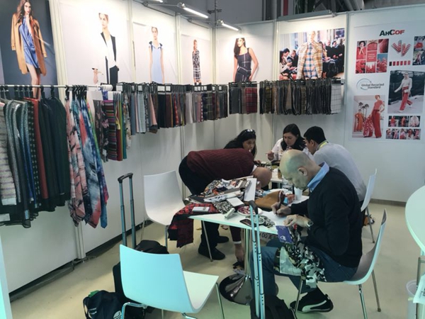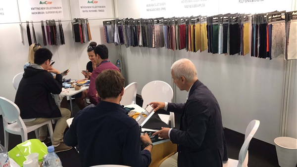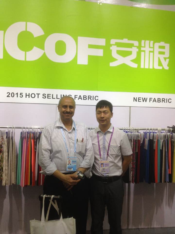 去過廣交會(huì)的同事們都知道,廣交會(huì)每天的參展任務(wù)是異常繁忙且辛苦的。5月1日國(guó)際勞動(dòng)節(jié),也是廣交會(huì)三期開展的第一天,位于15.4號(hào)館主通道旁邊的安糧紡織品展位人流如織,云集的客商都被展位上精心挑選、花樣繁多的樣品所吸引。面料中晶晶閃閃的亮片、時(shí)尚FASHION的提花剪花格外受到客人們的青睞,單朋朋和同事們身邊圍滿了膚色各異的外國(guó)客商,他們既熱情又耐心地與每一位客商溝通,介紹產(chǎn)品信息、核算價(jià)格并及時(shí)登記記錄,便于展會(huì)后的持續(xù)跟進(jìn),展位上一片熱火朝天。
