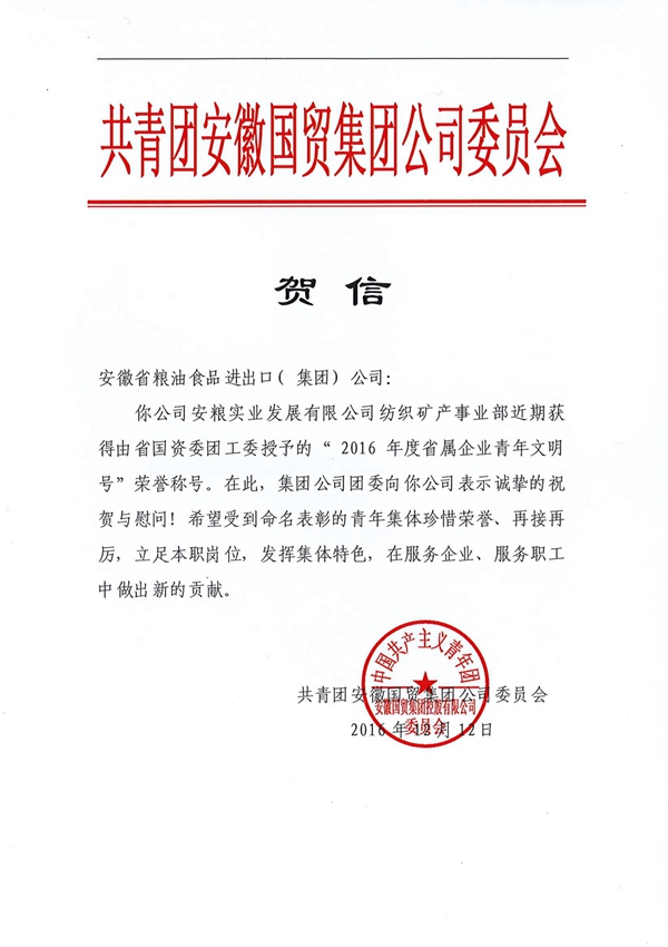 對(duì)于小伙伴們來說,家人們做出的犧牲成為了最堅(jiān)強(qiáng)的后盾,加上公司領(lǐng)導(dǎo)的關(guān)懷和鼓勵(lì),給了整個(gè)團(tuán)隊(duì)巨大的拼搏動(dòng)力,他們擼起袖子加油干,全心全意撲在工作上,最近流行的“996”對(duì)他們來說早就是家常便飯,即便是周日也隨時(shí)待命。在大家的共同努力下,短短幾年的時(shí)間,紡織品的年出口額從金融危機(jī)后的一千多萬美元上升到目前將近五千萬美元。2016年,安糧實(shí)業(yè)紡織品團(tuán)隊(duì)被省國(guó)資委團(tuán)工委評(píng)為“省屬企業(yè)青年文明號(hào)”,這也是安糧系統(tǒng)首個(gè)獲此殊榮的集體,辛勤的付出終于結(jié)出累累碩果。