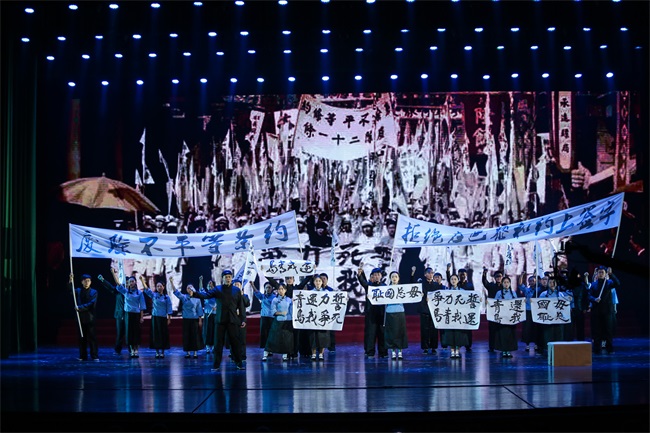 情景劇《使命的接力》分為四個篇章,前三個篇章以五四運動、抗日戰(zhàn)爭、新中國成立以及改革開放等重要時間節(jié)點為背景,節(jié)選具有鮮明時代烙印的畫面,講述了一百年來中國人民的民族氣節(jié)和不屈不饒的奮斗歷程;最后一個篇章則回歸到當(dāng)下外貿(mào)工作中的一個真實場景,描述了新時代國貿(mào)人接過前輩的接力棒,不忘初心、牢記使命,在一次次的磨礪中不斷成長,立志為中華民族偉大復(fù)興貢獻(xiàn)力量的動人故事。