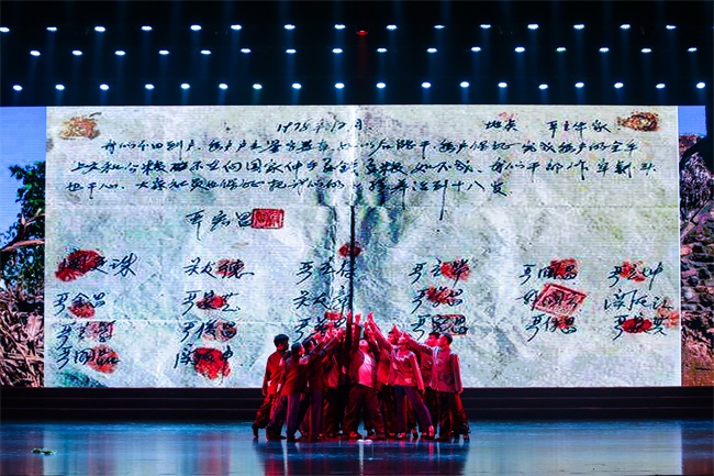 《我們都是追夢人》用昂揚向上的歌曲和活力四射的舞蹈描繪了奮戰(zhàn)在新時代的國貿(mào)追夢人堅守崗位、努力拼搏,共同建設(shè)“幸福國貿(mào)”的動人畫卷,也表達(dá)了國貿(mào)人熱愛祖國、祝福祖國的深切情義;《新時代》則以小崗村大包干為背景,反映安徽鄉(xiāng)村百姓的生活變化,折射出改革開放40年中華大地的滄桑巨變。