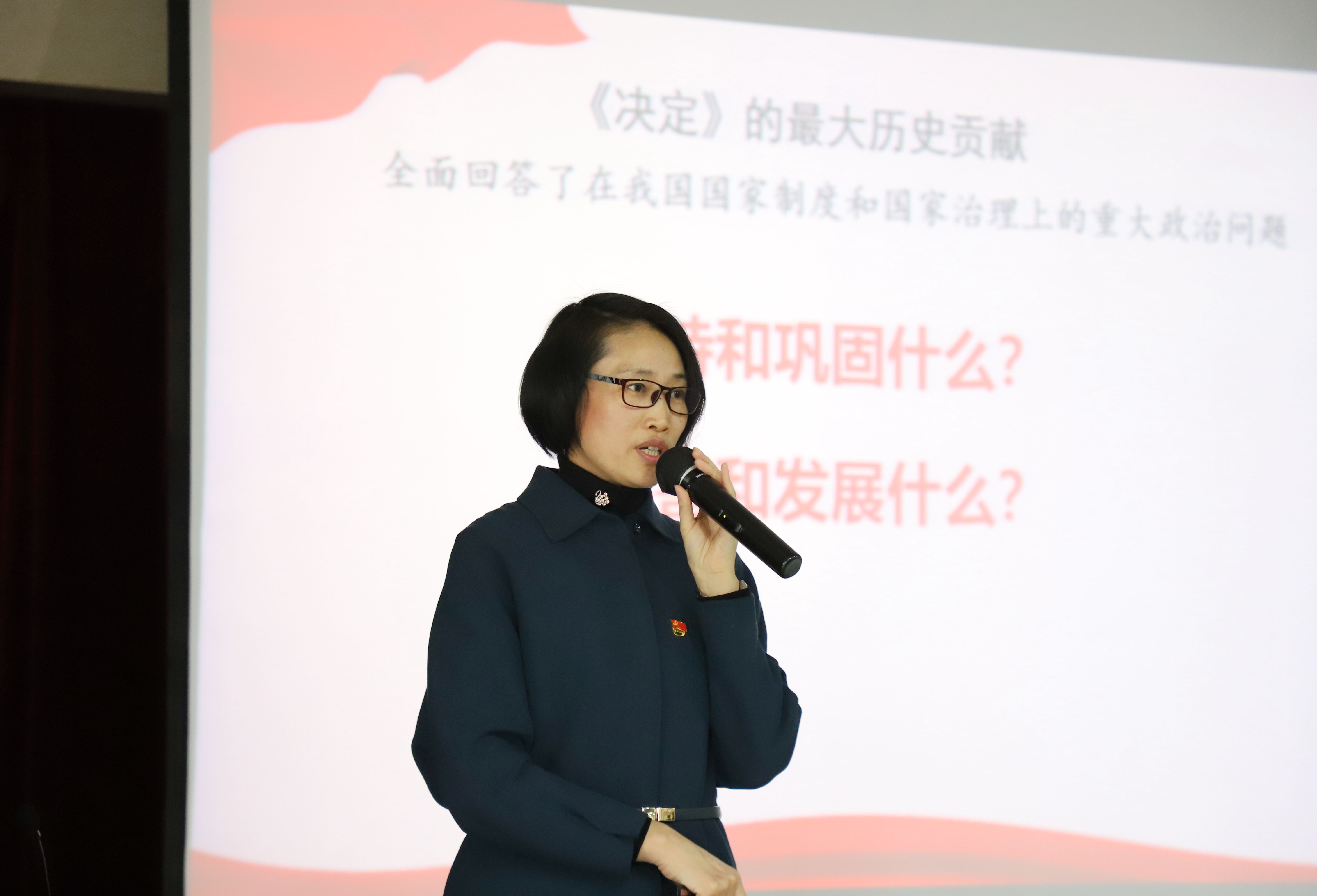 在兩個多小時的宣講中,吳教授圍繞“充分認識四中全會的重大意義”“堅定中國特色社會主義制度自信”“準確把握總體要求、總體目標和重點任務”“切實把制度優(yōu)勢轉化為治理效能”四大章節(jié),帶領大家回顧了十八大以來歷次中央全會的主題與鮮明特點,用十三個方面的“顯著優(yōu)勢”、十三個“堅持與完善”、三個“突出”、四大“亮點”,深刻闡釋了全會召開的重大意義,深入闡述了中國特色社會主義制度和國家治理體系的優(yōu)勢和實踐成果,以及《決定》的重大歷史貢獻。