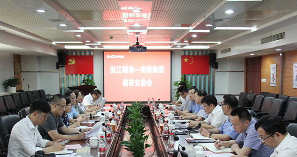 7月31日上午,浙江糧油董事長袁承海帶隊(duì)來到安糧調(diào)研交流,公司黨委書記、董事長曹訓(xùn)立,黨委副書記、總裁方宗友及部分集團(tuán)控股領(lǐng)導(dǎo)班子成員熱情接待了袁承海董事長一行,并舉行交流座談會。