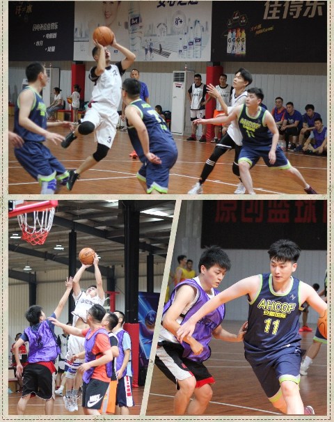 簡短的開幕式后,隨著裁判員的第一聲哨響,比賽正式打響。根據(jù)賽制,第一輪11支代表隊(duì)分A、B兩組進(jìn)行組內(nèi)單循環(huán)比拼,兩組積分前兩名的四支隊(duì)伍進(jìn)入半決賽。分組對抗中,25場比賽輪番上演,各支隊(duì)伍盡展實(shí)力:流暢默契的擋拆配合,不知疲倦的掩護(hù)跑位,頑強(qiáng)的防守,靈動(dòng)的過人,每一次卡位與籃板爭搶中的肌肉碰撞,每一次進(jìn)攻得分后的縱情歡呼,一次次引發(fā)現(xiàn)場觀戰(zhàn)同事們的掌聲和喝彩,一次次將比賽現(xiàn)場氣氛推向高潮。銳意拼搏的安糧精神、永不服輸?shù)陌布Z斗志,都在健兒們飛奔的身影和揮灑的汗水中展現(xiàn)的淋漓盡致。