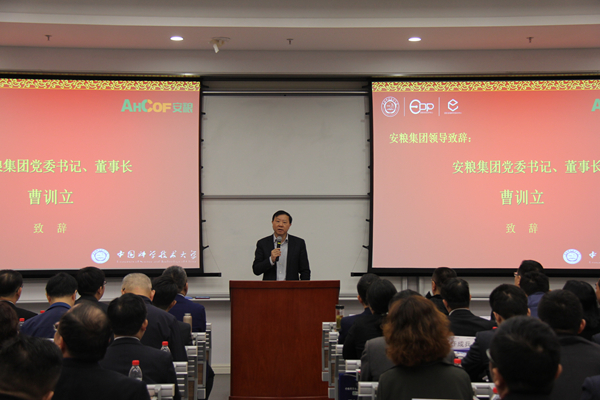 2020年10月30日,中國科學(xué)技術(shù)大學(xué)—安糧集團(tuán)EDP、MBA研修班在中國科學(xué)技術(shù)大學(xué)國際金融研究院隆重開班,安糧集團(tuán)董事長曹訓(xùn)立和中科大管理學(xué)院黨委副書記芮鋒分別致辭。