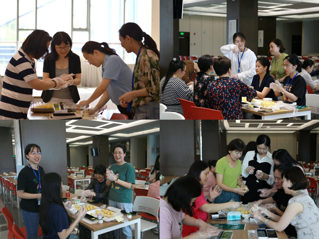 接著進(jìn)入了大家最躍躍欲試的環(huán)節(jié)——DIY綠豆糕。同事們圍坐一堂,有的揉面,有的裝模,有的擺盤(pán),有的包裝,大家一邊認(rèn)真制作,一邊相互交流。在大家精心制作下,一個(gè)個(gè)、一盒盒香甜美味、花色各異的綠豆糕呈現(xiàn)在眼前。活動(dòng)現(xiàn)場(chǎng)其樂(lè)融融,洋溢著和諧、平安與幸福的氛圍,大家一起感受親手制作綠豆糕帶來(lái)的歡樂(lè)。