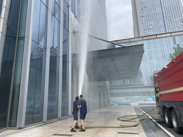 6月24日下午3時(shí),消防應(yīng)急演練總指揮下達(dá)演練開(kāi)始指令。隨著煙霧彈在辦公樓內(nèi)拋擲,煙霧觸發(fā)安糧中心辦公樓火警警報(bào),頓時(shí)消防警報(bào)和消防警鈴響起。隨后各小組迅速按照部署展開(kāi)滅火救援行動(dòng),消防和應(yīng)急救援隊(duì)員有序引導(dǎo)員工緊急疏散撤離至避難層,緊接著包河區(qū)應(yīng)急救援大隊(duì)消防救援車(chē)輛到達(dá)現(xiàn)場(chǎng),開(kāi)展了火情偵查、外圍滅火等系列滅火救援行動(dòng)。整個(gè)演練過(guò)程中,各小組配合默契、分工有序,圓滿(mǎn)完成了緊急報(bào)警、警戒疏散、醫(yī)療救護(hù)和滅火救援等演練環(huán)節(jié),及時(shí)排除了火災(zāi)險(xiǎn)情,有效達(dá)到了演練目的和預(yù)期效果。