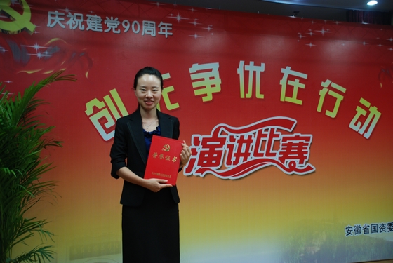 5月5日下午,為慶祝建黨90周年,安徽省國資委在三樓會議廳舉行省屬企業(yè)“創(chuàng)先爭優(yōu)在行動”主題演講比賽活動。來自27家省屬企業(yè)的優(yōu)秀選手同臺競技,安糧地產楊柳代表國貿集團參加了本次演講比賽,并以自信、從容和良好的語言表現(xiàn)力博得了臺下觀眾和評委的好評,獲得優(yōu)秀獎。